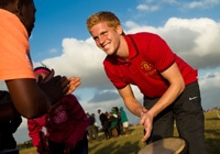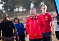 | 南アフリカのクワズール・ナタール州で行われているイシビニディプログラムを視察するマンチェスター・ユナイテッドのフォーガソン監督とベン・エイモス選手。 |