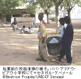 アフリカ大陸の最西端に位置し、その地形が人の顔にも例えられる、セネガル共和国。有名な自動車ラリー“パリ・ダカ”で知られる首都ダカールから北へ250キロにある町、ケベメールでユニセフは「学校環境プロジェクト」に取り組んでいます。安全で健康的な「子どもに優しい学校」にするための環境整備を目指しています。