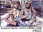 紛争は子どものあらゆる権利を奪い取ってしまいます。ユニセフが発表した「国々の前進1999」によると、シエラレオネは子どもの死亡率が最も高い国のひとつであり、約3割の子どもは5歳の誕生日を迎える前に亡くなってしまいます。また、6歳から14歳の子どもたちの55%は学校へ行くことができず、将来自立し、充実した生活を送るチャンスを奪われているのです。紛争下の子どもたちの権利を守るため、ユニセフは政府や他のNGOと協力して紛争時に緊急援助を行ったり、紛争終了後も子どもたちが元の生活へ戻るための支援を行っています。