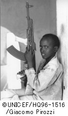 ソマリアには、子どもの兵士がたくさんいます。12,3歳くらいの子どもたちも兵士として働いています。町では、小銃だけでなくバズーカや対空機関砲、第2次大戦の時にドイツやイタリアの使っていたような、博物館に入るような古い武器も、特に南部の町では散乱しています。