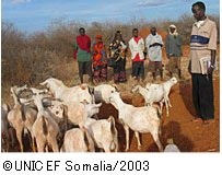 「子どもたちの親が、先生のためにひとり1頭のヤギを寄付してはどうだろうか、と考えたのです」と振り返るのは、地元の指導者のひとりです。「この努力が一回限りのものに終わらないように、雌のヤギを提供して、ヤギが増えていくことを考えたのです」