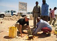 | ソマリア北東部の街、ガルカイヨで、学校の建設予定地に記念の植樹をするクリスチャン・バスレフーオレセン ユニセフ・ソマリア事務所代表(写真左) |