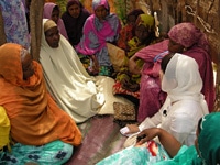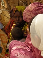 | 3ヵ月前にモガデシュから逃れてきたサクゥア・アリ・イブラヒムさん(37歳 写真左側の白い服の女性) |