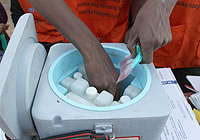 | ソマリランドのべール村で、ユニセフとWHOが支援する「子ども健康週間」のキャンペーン期間中に準備されるワクチン。 |