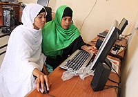 | ソマリアのブラオ多目的ユースセンターで、就職の情報を検索する女性たち。 |