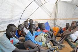 | 7歳から17歳までの兄弟8人の長男ニャンソンくん(17歳)。兵士である父親は兵舎に、母親は離れた村にいるため、子どもたちだけで、ジュバの難民キャンプで避難生活を送っています。「両親がいない暮らしは簡単ではありません。食料や調理用の炭の配給がもらえず、お腹を空かせていることもあります」(ニャンソンくん) |