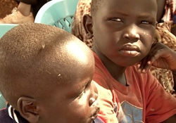 | 親せきと離ればなれになり、ジュバで暮らしている男の子たち。 |