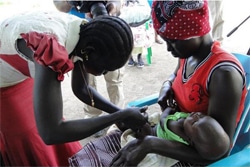 - ジュバとベンティウでは、新生児と妊産婦のケアを実施(健診、マラリア予防の蚊帳の配布、微量栄養素の提供、破傷風の予防接種実施、出産の立会い)