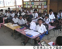仮設教室で授業を受ける子ども達(スリランカ・ゴールにて) |