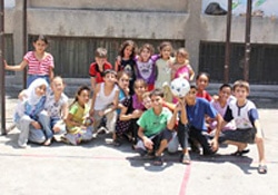 | 避難所となったダマスカス市内の学校で、ユニセフが提供したレクリエーションキットで遊ぶ子どもたち |
