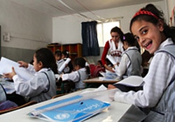 ユニセフのもう一つの最優先事項は、受け入れる学校の“能力”の拡充を支援することです。ユニセフは、現在、シリアの子どもたちを受け入れている約110の学校で、学校職員や教員、校長、保護者を対象に、子どもが積極的に学べる教育手法や、子どもを肯定的に評価しながら躾る手法、仲間はずれを生まない教育手法などに関する研修を実施しています。