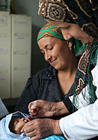 6月4日現在、タジキスタンでは581例の急性弛緩性麻痺が認められ、このうち、感染力の強い野生株ポリオウィルス1型が183名から検出されました。これらのケースのうち、大半は6歳未満の子どもで、5名の死亡がポリオと関連付けられています。発症例の多くは、アフガニスタンやウズベキスタンと国境を接するタジキスタン南西部、および首都ドゥシャンベに集中しています。不顕性(麻痺の症状が現れない)の感染例もおよそ200〜400倍あると見られ、これらも感染拡大の源となっています。