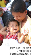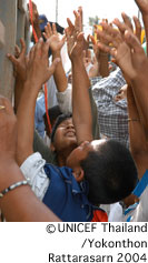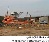 ユニセフのタイ事務所では、津波被害が起きてから、ただちに対応を行いました。スタッフ・チームを現地に送り込み、子どもたちの状況を調査・評価し、被災家族や子どもたちを支援するための計画に必要な重要情報を収集しました。ユニセフは、タイ政府と協働して復興支援を行い、ただ単に12月26日以前の状況に戻すというのではなく、よりよい状況を子どもたちにもたらす努力を続けています。