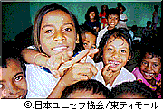 99年夏の騒乱では、ディリ市内の多くの建物が民兵による焼き討ちにあい、住民は安全を求めて山や西ティモールでの避難生活を余儀なくされました。地域社会のきずなは失われ、多くの子どもが心に傷を負ったのです。ユニセフは傷ついた子どもが一日でも早く平常心を取り戻すために、安心して学び、遊ぶことのできる場所の整備を東ティモール各地で進めています。