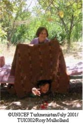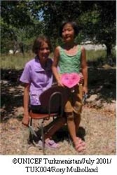 「健康への道」と名づけられたこのキャンプは、中央アジアのトルクメニスタン北部の町、Dashoguz近郊の、樹木が茂った庭園のなかで開かれます。今年の夏で3回目を数えるキャンプは、毎回異なるテーマを設けています。地元の学校の先生たちが指導者を務め、ユニセフが支援をしています。