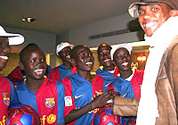 | バルセロナで過ごす最終日、TKLは、カメルーン出身のFCバルセロナのス-パー選手であるエトー選手と会った。 |