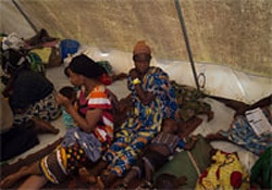 | この日、ウガンダのルワムワンジャ難民キャンプに辿り着いたコンゴ民主共和国の女性と子どもたち。難民キャンプ地では、武力紛争の影響を受けて避難を強いられた数万人の人々が生活している。 |