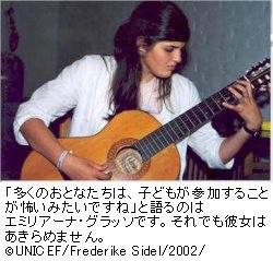 彼はモンテビデオに住み、ユニセフが支援する子どもの権利の活動家からなるネットワークで大活躍しています。「ユニセフが開いてくれる会合は、ウルグアイの若者にとってとても重要です。国中から若者が集まって、自分たちの悩みを話し合い、行動計画を作り、真剣に受け止めてもおらうとする機会があることは、初めてのことです。「問題は、おとなが僕たちを参加させることに二の足を踏むことです。どうも、私たちが世界を不安定にするのではないか、と考えているようなのです」