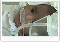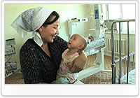 | 子ども医療センターで治療を受けるマブルダちゃん(生後3ヵ月)。 |