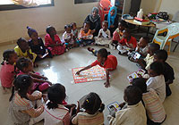 オマルちゃんは、保育センターに通い始める以前は、家の中で、過酷な状態に置かれていました。「お母さんは、僕を何時間もベッドの隣に縛りつけていたんだよ。まるで犬みたいに。火や電気で遊ばないようにって。とてもひどかった。でも、今はずっといいよ。」「ここなら友だちと遊べるし、美味しい食事もあるし、歌やおもちゃをつかった遊びも教えてもらえるんだ。」(オマルちゃん)