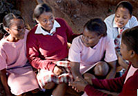 また、チンヤンタさんは、もっと小さな女の子たちが活動している学校を訪れました。「ガール・スカウト」と提携している「ガール・ガイド」が行っているプログラムです。「ガール・ガイド」のメンバーは、創造力を駆使して、行動を変える方法やHIV感染防止について、小さな女の子たちに広めています。