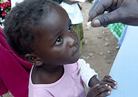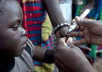 「過去数十年の間、はしかは、5歳未満児の5大死亡原因のひとつとなっています。」ユニセフ・ザンビア事務所のロジャース・ムワレ保健担当官はこう話します。「2003年から、ザンビアでははしかの「再」撲滅キャンペーンが行われました。生後6ヵ月から15歳までの、約450万人の子どもたちを対象に予防接種を行いました。」