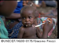 ユニセフは当座の緊急支援として5歳未満児のための栄養補助食600トン、プラスチック性水容器2000個、せっけん360個、浄水剤10万個などの物資を調達すると同時に、子どもたちの労働や教育、HIV/エイズ感染者を抱えた家族への支援といった視点からも支援を続けています。