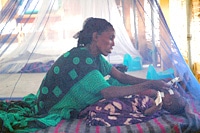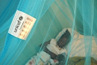 殺虫剤処理を施した蚊帳を使用することによって、5歳未満児の死亡率を最大で25%低下させることができます。最新の推計によれば、サハラ以南のアフリカでは蚊帳の下で眠る子どもの割合はわずか4%にすぎませんが、1999年から2003年の間に配布された蚊帳の数は10倍に増えました。マラリア対策に必要な資金は年間32億米ドル、アフリカだけでも19億米ドルにのぼります。ユニセフは、多くのパートナー機関とともに、殺虫剤処理済みの蚊帳やACTのさらなる普及に取り組むとともに、各国政府がマラリア対策に率先して取り組むよう呼びかけています。