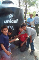 ユニセフは、被災地域の住民25万人に対して1ヶ月間安全な飲み水を提供するため、国営水道会社ANDAと協力して、飲料水の生産、輸送、貯水を支援しています。