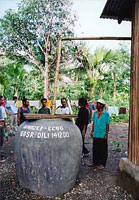 東ティモールではインドネシア統治下時代、清潔な水を入手できた住民の割合は半分以下で、適切なトイレを使えた住民はさらに少数でした。住民投票後の騒乱によるインフラの破壊で、水と衛生の施設の大部分が破壊されました。ユニセフの水と衛生プログラムはディリ、ウルメラ、マナトゥトの3県で重点的に行われ、井戸の修復、雨水槽の設置、トイレの修復と新設が進められました。
