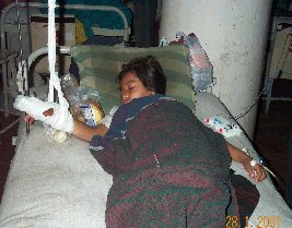 「私は長女のポーラムしか助けることができなかった。この子の妹と私の両親は未だ瓦礫の下に埋もれている」。担ぎ込まれた病院の一室で眠る娘のポーラムを見つめるマヘシュの目には、涙が浮かんでいる。「地震の揺れを感じた時はただ祈ることしかできなかった。逃げる間もなく家が崩れてきた」。マヘシュは崩れ落ちた石で右腕を骨折したが、かろうじて娘を救出し、幸運にも病院へ向かう州政府のバスに乗ることが出来た。