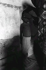 4歳の娘カルスモは、同じ母子保健センターで母に抱かれて保健員からビタミンAの経口補給を受けています。ビタミンAは栄養の補給と共に病気の抵抗力を強めるために必要です。