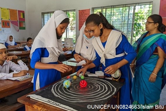 具体的には、バングラデシュ、中国、インドネシア、カザフスタン、キルギス、ラオス、ナミビア、ニジェール、ペルー、ウズベキスタン、そしてベトナムにおいて、これまで固定観念やジェンダー差別によって女の子が遠ざけられてきたSTEM(科学、技術、工学、数学)教育を促進します。また、雇用・エンパワーメントプログラムを通じ、女の子たちの自己肯定、チームワーク、決断力やメンターシップなど、教育で学んだことを雇用や社会の分野でも活用できるスキルを提供し、社会に適応できるように支援します。例えば、キルギス、カザフスタン、ウズベキスタンにおいてユニセフはパートナー大学と協力し、女の子たちの間で STEM教育が拡がるように促し、超小型衛星の開発の仕方やパブリック・スピーキングの能力、時間管理能力などのスキル習得を支援しました。
