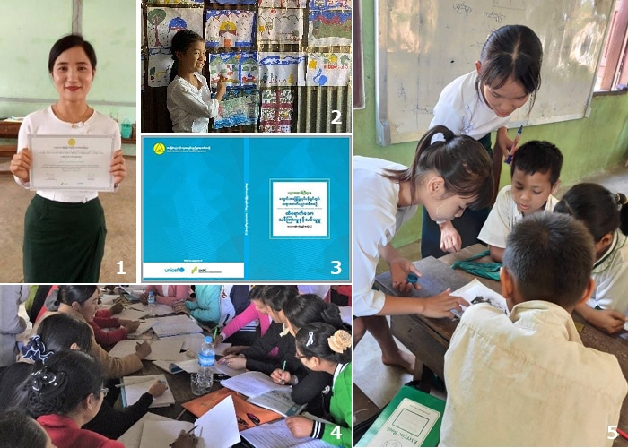 ユニセフは、ミャンマー政府との合意に基づく取り組みのひとつとして、ミャンマー教育省との協働で開発・実施しているこのような教員研修が優先活動州全域で行われ、全ての子どもが良質な教育を受けられることを目指しています。