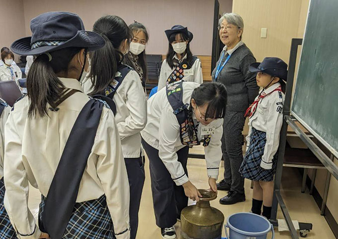 ガールスカウトのワールドシンキングデー(世界中のガールスカウトが互いに思いやり、重要な問題に取り組む特別な日)にあわせてユニセフ教室を開催しました。水がめ運びの体験、蚊帳の体験、食料分配のワークショップを通して、世界の子どもたちの現状を学ぶとともに、今の自分たちに何ができるかを学ぶ機会となりました。