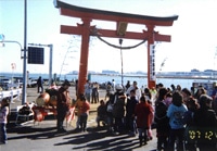 羽田ボランティア推進の会は、第二次世界大戦後のきびしい歴史の中で残った朱赤の大鳥居に「平和」の額を掲げ、羽田平和の大鳥居として地域の方々の熱心な参加を得て鳥居を守っています。そして、戦後、日本の子どもたちがユニセフから65億円もの支援を受けたことを感謝し、2003年にユニセフ募金箱を設置してくださいました。今は3代目の金属製の募金箱です。