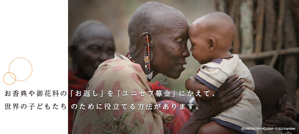 ご葬儀などでお香典や御花料をいただいた方々への「お返し」にかえて、ユニセフにご寄付いただく方法です。