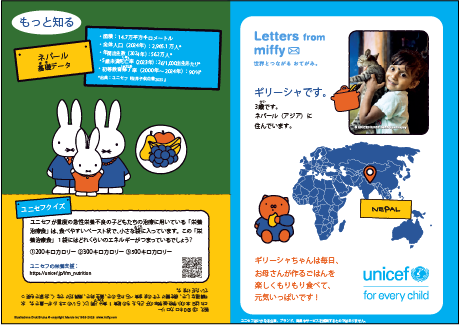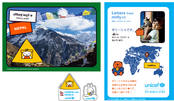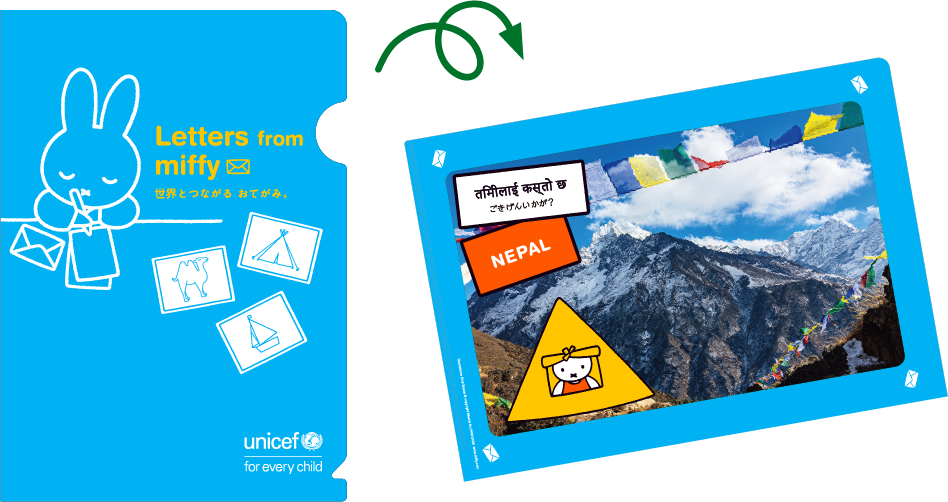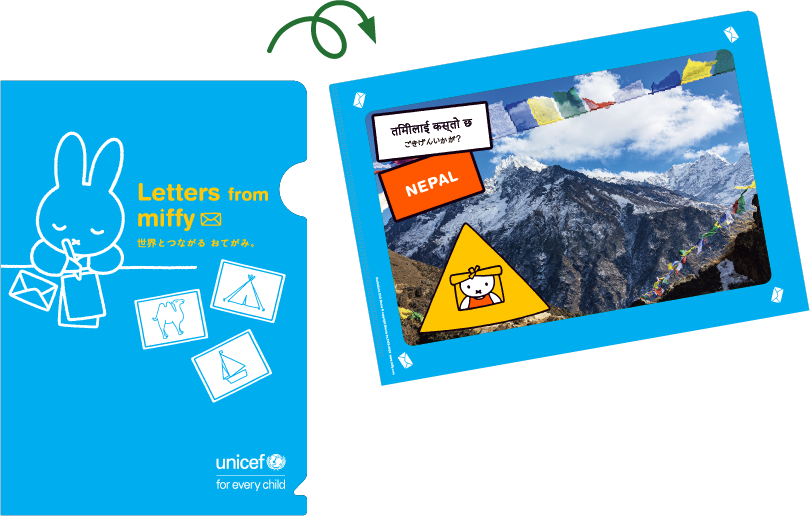毎月の定額寄付プログラム「ユニセフ・マンスリーサポート・プログラム Letters from miffy」では、世界を旅するミッフィーが、行く先々で出会ったユニセフの支援を受けた子どもたちのストーリーを紹介するおてがみを、皆さまにお送りします。