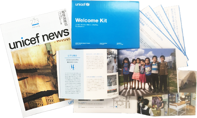 初回のお引き落とし前に「ウェルカムキット」を、その後は年4回、子どもたちの状況とユニセフの活動を伝える広報誌「ユニセフニュース」を郵送、Eメール配信でお届けします。また、日本ユニセフ協会が発行する各種資料の最新版を無料で提供いたします。