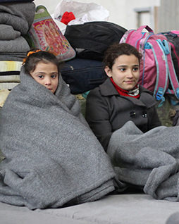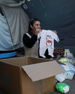 その後、ユニセフからあたたかい衣類が届きました。目の見えないサアドのために姉が手を取って、袋の中に入っている洋服をひとつずつ説明すると、サアドは嬉しそうな笑顔を見せました。