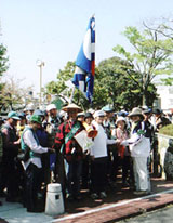 愛知県ウォーキング協会の4月例会 ユニセフ・ラブウォーク 2005年4月17日開催「コースリーダーの編み笠にご注目!」 |