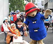 日本ユニセフ・ラブウォーク協議会主催 ラブウォーク中央大会 2005年4月10日開催 「出発前にパディントンとハイ、ポーズ」 |