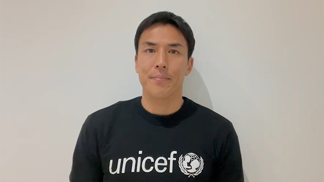 私は子どもの頃からの夢であった大相撲の世界に入り、9月場所では技能賞をいただきました。しかし、今、世界では生きる権利さえ奪われ、夢を実現できない子どもたちがたくさんいます。私も子どもたちが明るい未来をもてるよう頑張ります。ご協力よろしくお願いします。