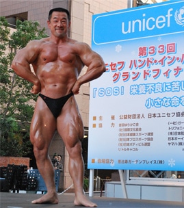 フルート奏者の高木綾子さんの演奏で幕を開け、リトルキャロルの美しい歌声、トリフォニー・ジュニア・オーケストラのホルン・クインテットと続き、そして高木さんのフルートと松岡みやびさんのハープのデュオ、と会場は一気に盛り上がりました。そしてアジアボディビル選手権大会70kg級チャンピオンの合戸孝二さんが音楽にのせてポーズを決めるたび「おお〜!」と会場が沸きました。
