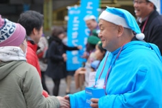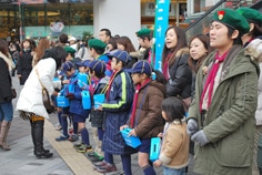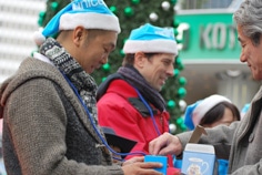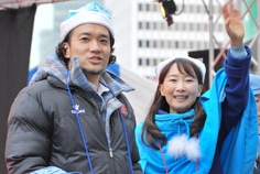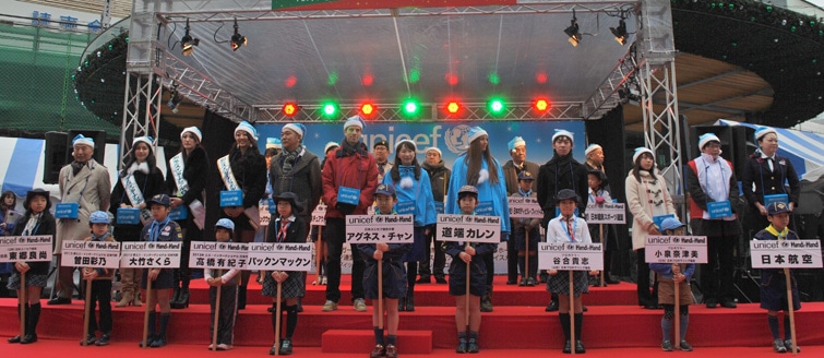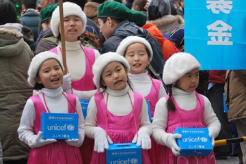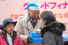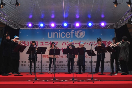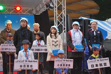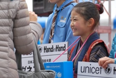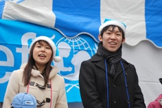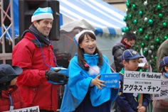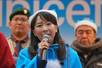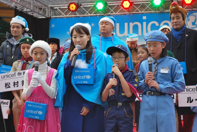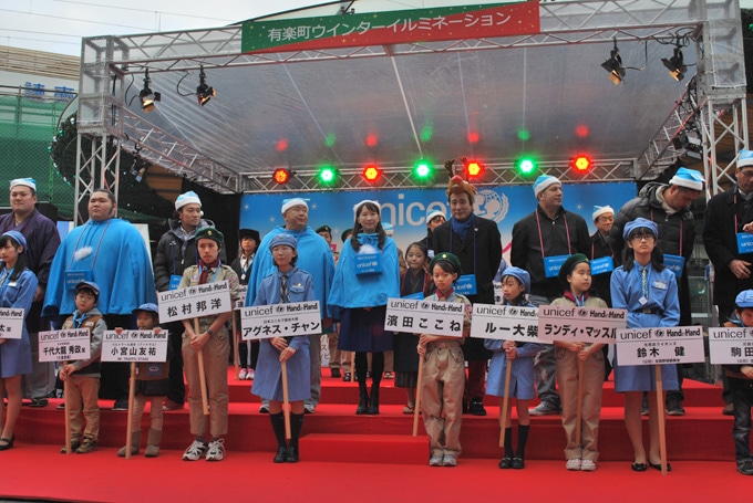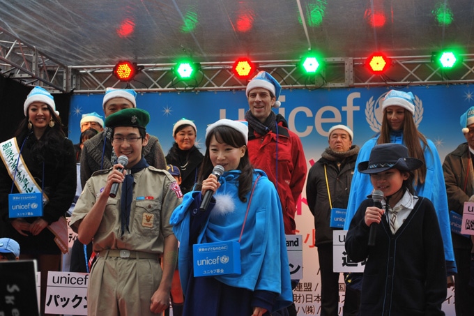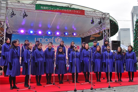 「世界の子どもたちのために、ユニセフ募金にご協力ください!」寒さに負けない元気な声が有楽町駅前広場に響き渡りました。