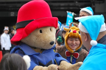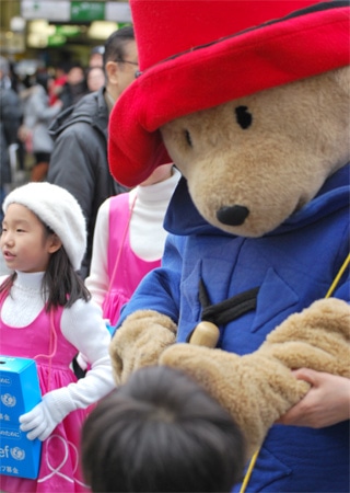 毎年子どもたちに大人気のパディントン・ベア。パディントンの下げた募金箱にも、小さい子どもたちがたくさん募金してくれました。
