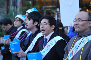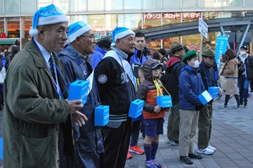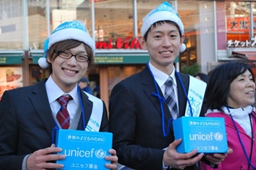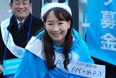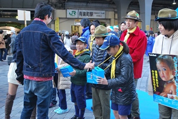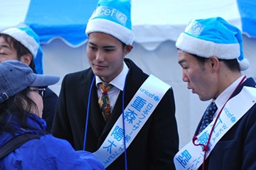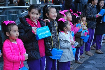 「世界の子どもたちのために、ユニセフ募金にご協力ください!」寒さに負けない元気な声が有楽町駅前広場に響き渡りました。