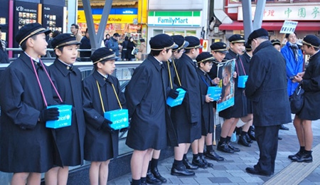 暁星小学校、ボーイスカウト、ガールスカウトの子どもたちも大きな声でご協力を呼びかけました。