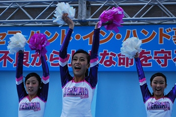 続いて登場してくれたのは、乳幼児から高校生のメンバーで構成されたチアダンスチーム「Brilliant☆Mermaid」躍動感あふれるエネルギッシュなダンスで皆に元気をくれました。「世界中の子どもたちにたくさんの笑顔と元気を届けたい」そんな思いで一生懸命演技をしました。」と話してくれました。 Brilliant☆Mermaid の皆さんはこの後の募金活動にもご協力いただきました。ありがとうございました。