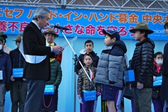 アグネス大使が、子どもたちと一緒に募金活動開始の宣誓をし、募金活動開始!